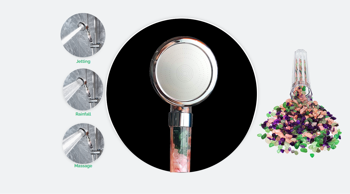 Se cree que estas piedras emiten energías calmantes, lo que contribuye a una experiencia de ducha serena y terapéutica que promueve la armonía interior.