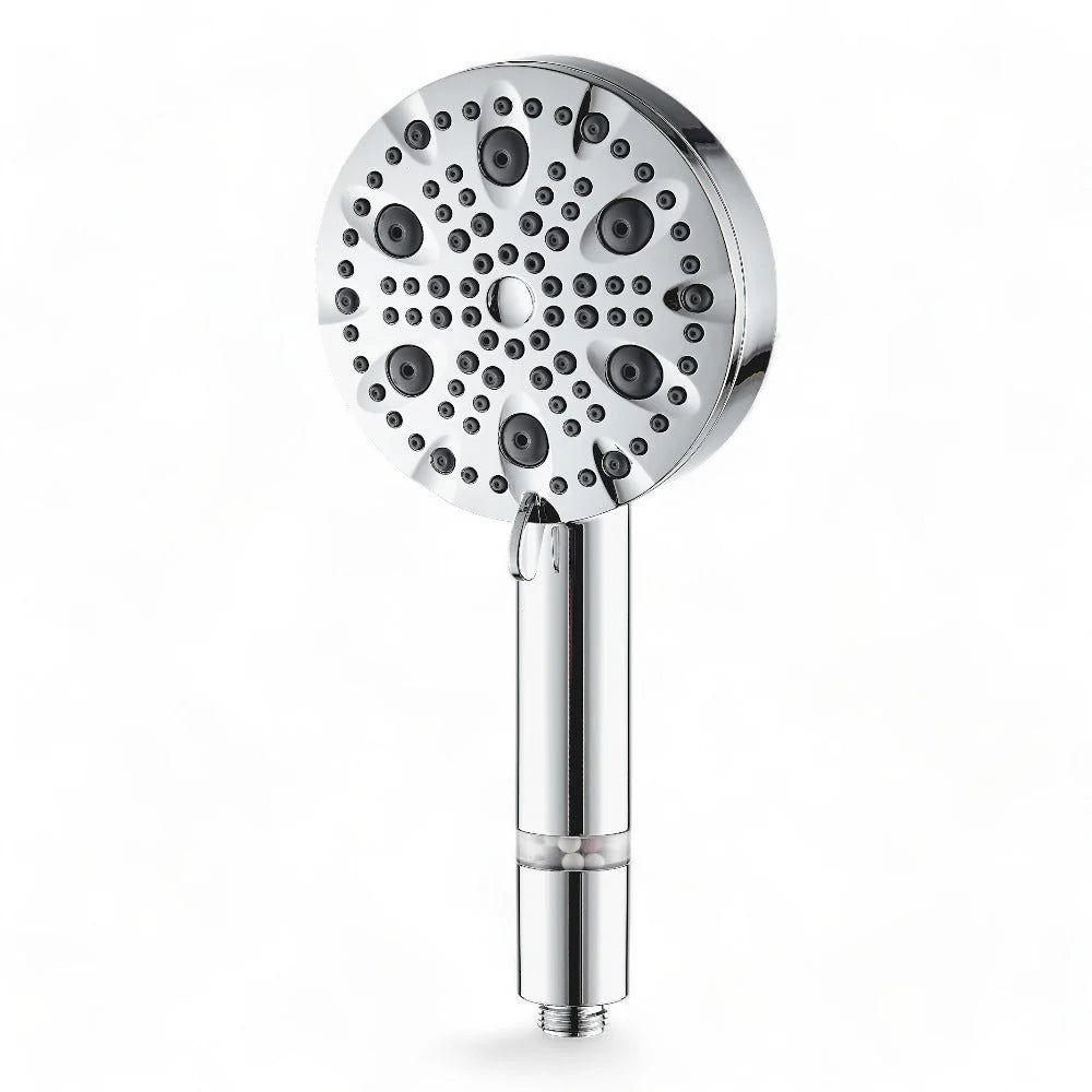 Este cabezal de ducha ofrece 9 configuraciones de rociado distintas y cuenta con un sistema de filtración iónica para purificar el agua, brindando una experiencia de ducha mejorada y personalizable.