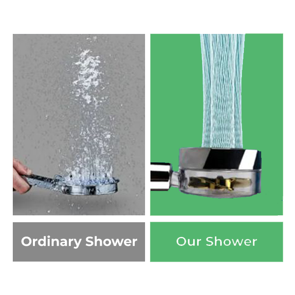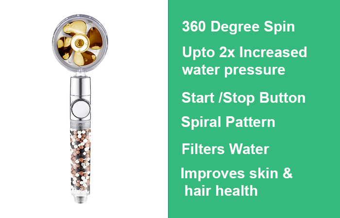 El cabezal de ducha TurboFan utiliza un diseño de turboventilador que crea un hermoso patrón de agua que fluye y el ventilador de color dorado también se ve hermoso. El cabezal de ducha ahorra agua y tiene microagujeros cortados con láser que aumentan la velocidad del agua, proporcionando hasta el doble de presión para una mejor experiencia de ducha.